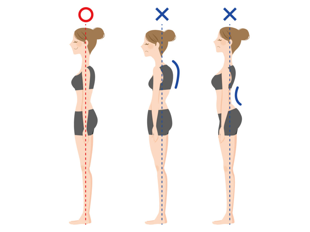 猫背や反り腰では、腰椎に持続的なストレスがかかります。