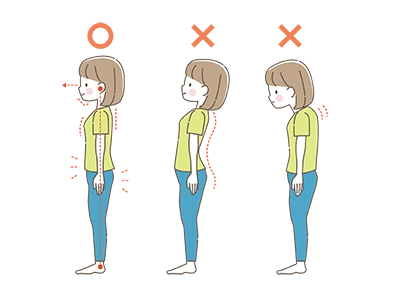 鏡の前で姿勢の確認をしてみましょう。